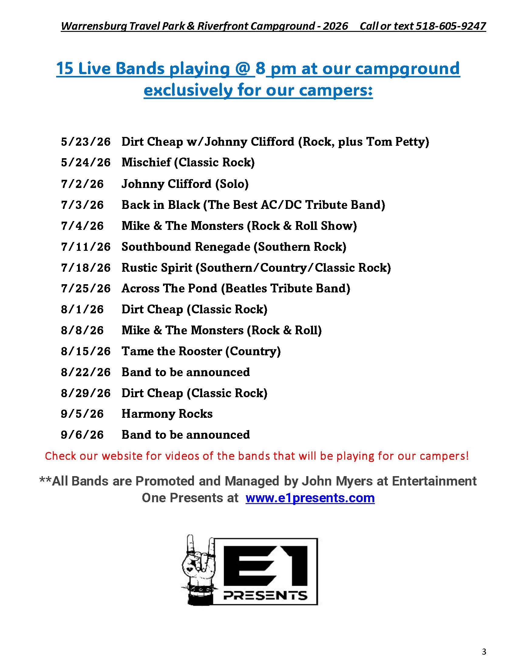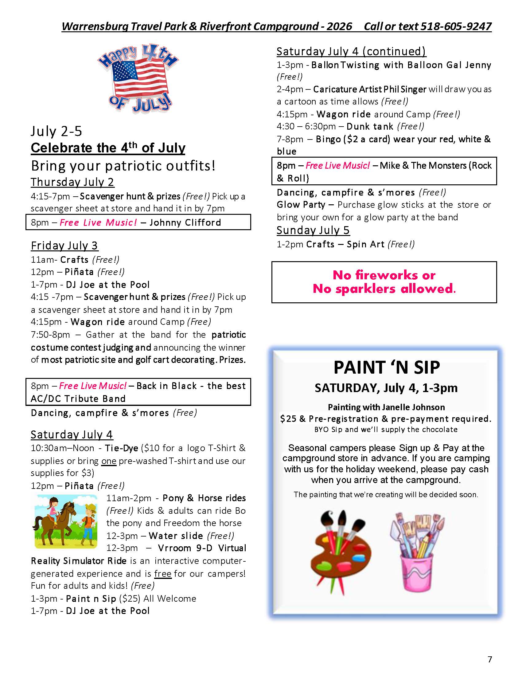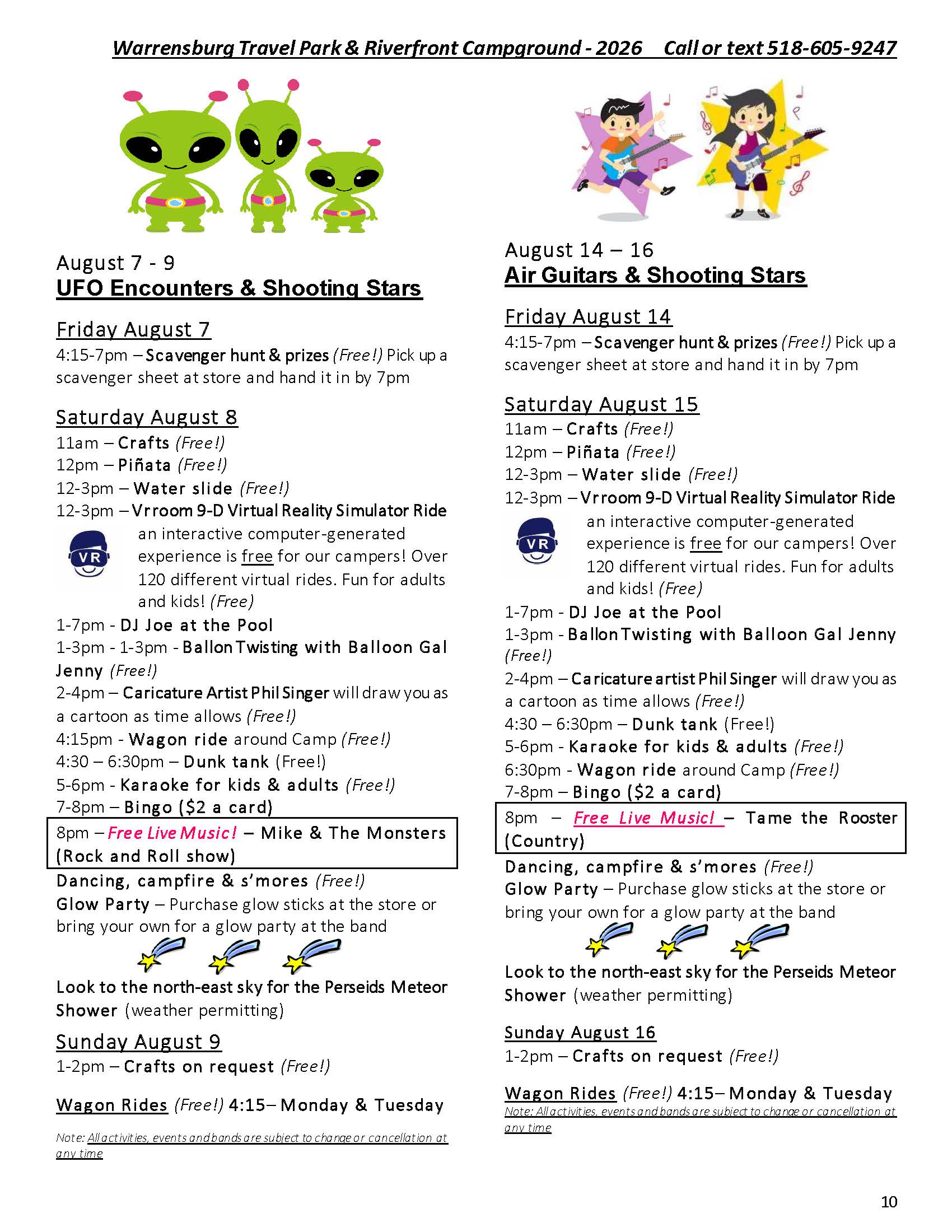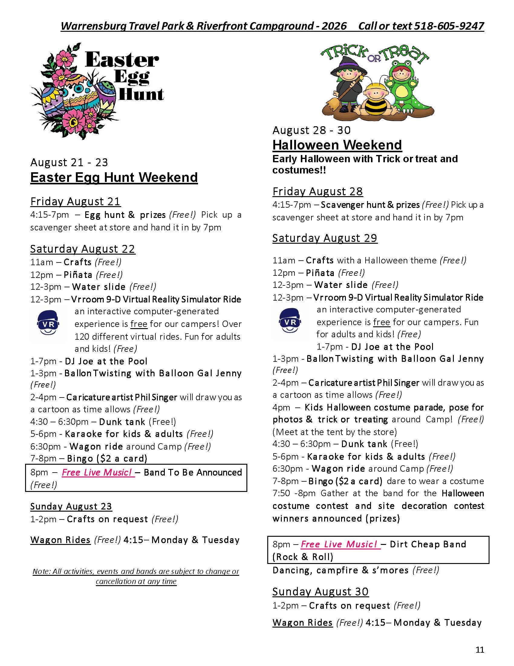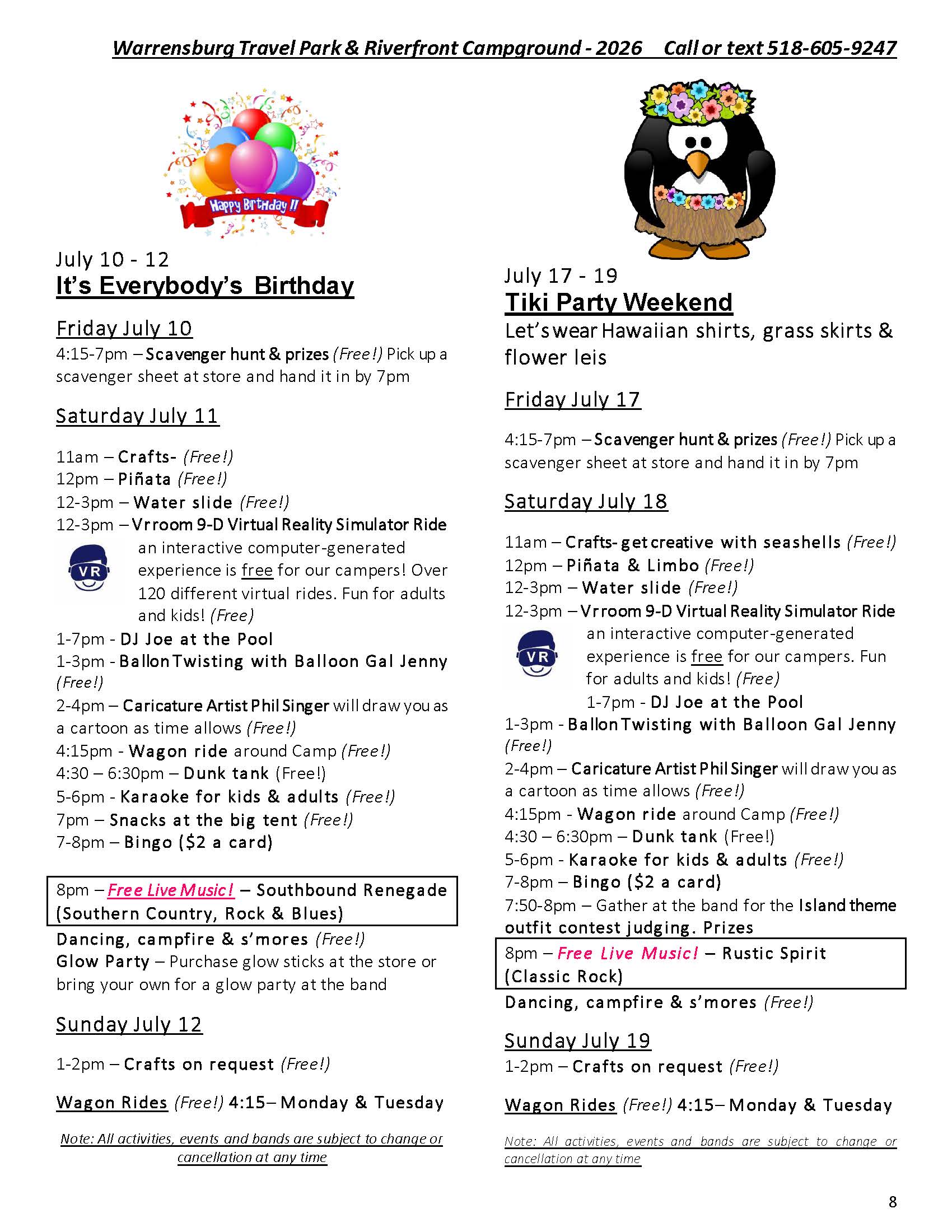 Welcome to the Activities Calendar for Warrensburg Travel Park & Riverfront Campground in the Lake George Region!