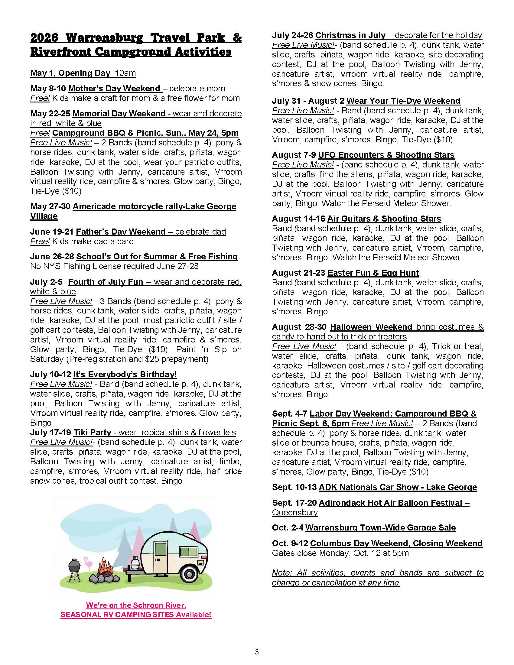 Newsletter updates receive timely updates on all things Warrensburg/Lake George – from upcoming events and seasonal highlights to insider tips on the best events. Stay in the know and ensure your RV adventure is always one step ahead.